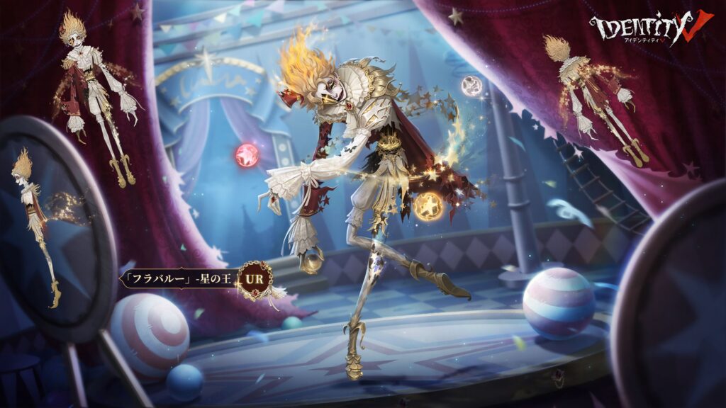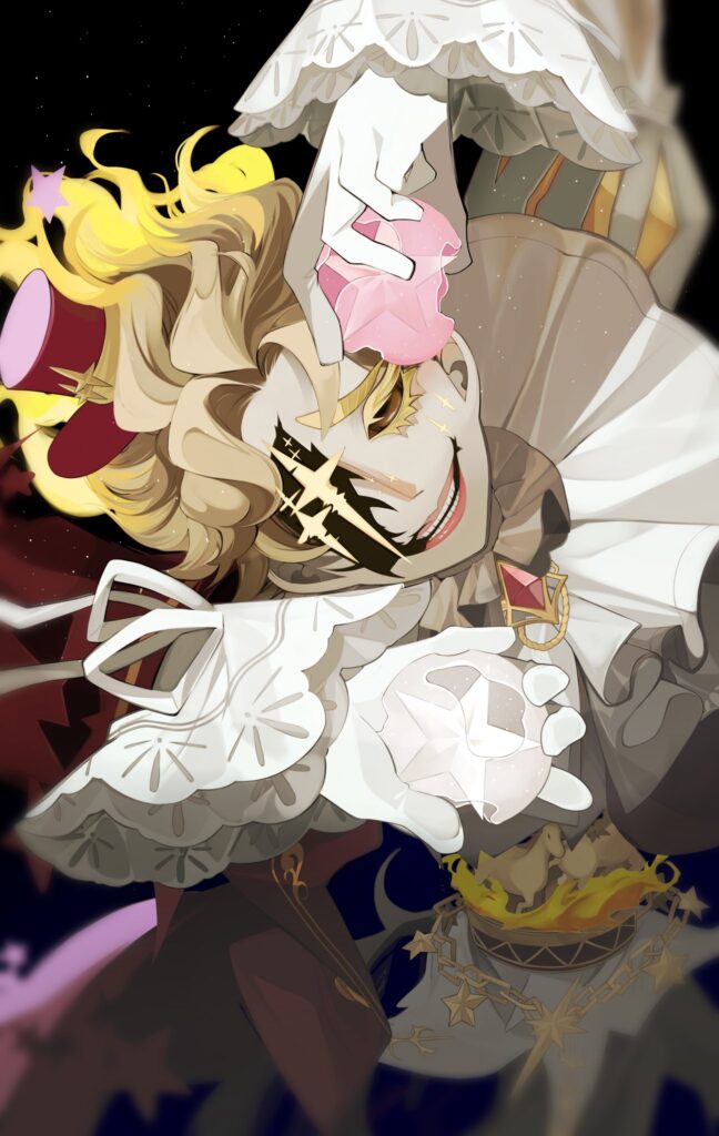 本作は、スマートフォンアプリ『第五人格(Identity V)』に登場するキャラクター「元・曲芸師」の実装を記念して制作したファンアートです。かつて観客を魅了した明るさを持ちながら、現在は鬼(ハンター)として暗い運命を背負うという、複雑な二面性に焦点を当てた表現を試みました。