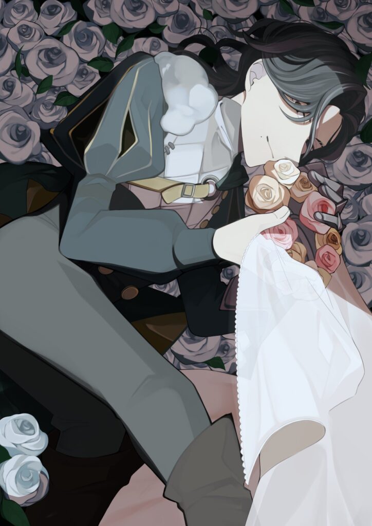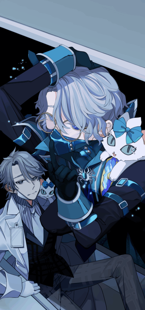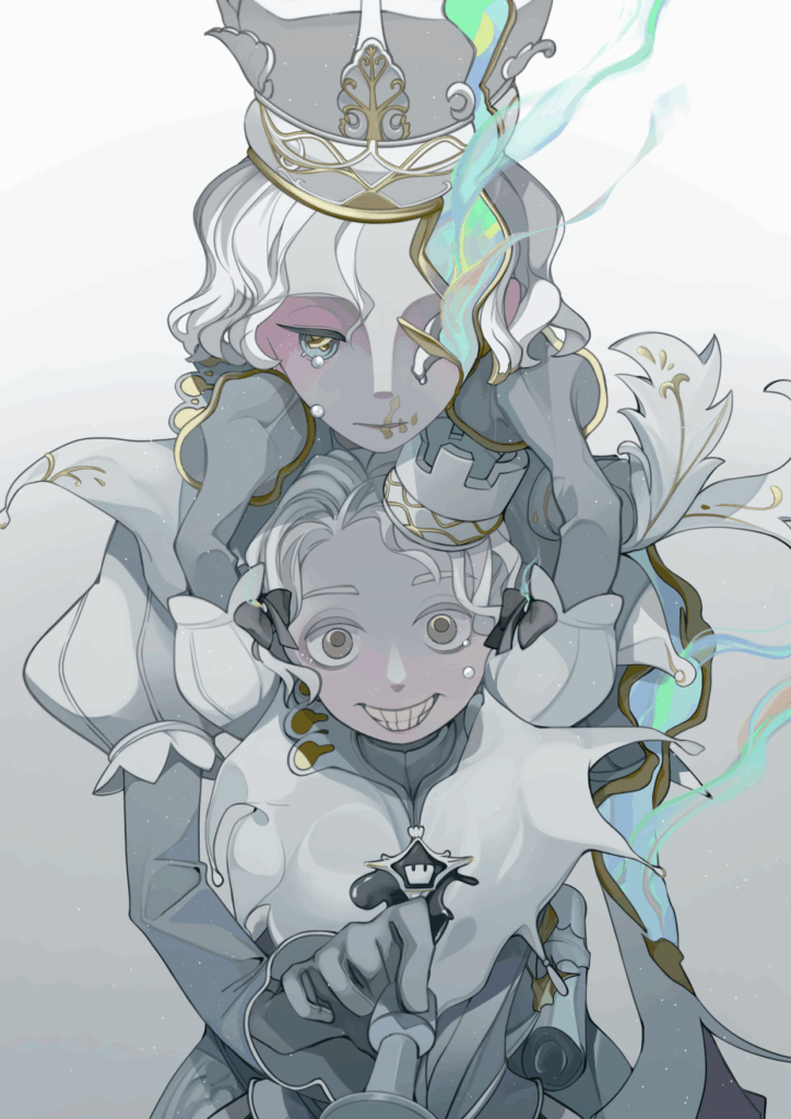 本作は、スマートフォンアプリ『第五人格(Identity V)』に登場するキャラクターの新規衣装実装を記念して制作したファンアートです。ゲーム内シナリオにおいて、描かれている二人は“同一人物”という設定が存在するため、仕草や雰囲気の統一を重視し制作しました。