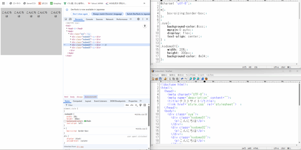 訓練日誌 -本日のアジェンダ- 2025年7月2日 / 1限目学科 HTML/CSS基礎⑥CSSの記述方法について 2限目学科 HTML/CSS基礎⑥CSSの記述方法について 3限目学科 HTML/CSS基礎⑥Webページ制作実践 4限目学科 HTML/CSS基礎⑥Webページ制作実践 5限目学科 HTML/CSS基礎⑥本日の講義のまとめ 本日はコマンドを使用して、css内の変更後の画面の動きを実践しました。