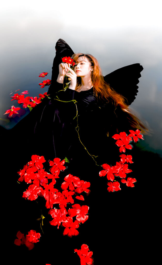 元の女性の白い花達から天使が浮かんだので、小さい女の子と女性に体格に合わせた羽の大きさを追加。